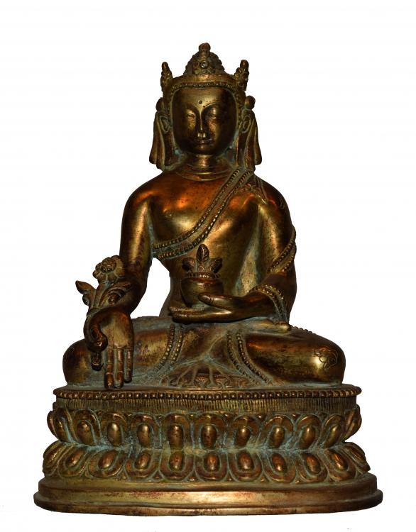 Tibetan Buddhism is generally spread the image of Buddha body is blue pharmacists lover solemn, left hand holding a bowl filled with nectar, right hand holding the blame pear Le fruit (Terminalia drugs).