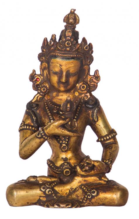 Vajrasattwa the sixth Dhyani Buddha is regarded by the Nepali Buddhist as the priest of the five Dhyani Buddha. He is not represented in the stupa like other dhyani buddhas but independent shrines are dedicated to his worship. His worship is always performed in secret ad is not open to everybody he is said to have originated from seed syllable Hum and is generally invoked for removal of obscuration of Kleshavaran and jneyavaran. His body is white in color, sitting cross-legged the vajraparyanka posture. His right hand holds a five pronged golden vajra at his heart and left hand holds a silver bell at his side.